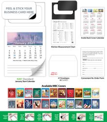 AVAILABLE IN INCREMENTS OF 100 ONLY. Prices include 12-month calendar with US and Canadian holidays highlighted, convenient re-order form and next year’s calendar on backer card. Kitchen measurements artwork on back of backer card. Calendar magnet with punch-out magnet. Printed "Gift for You" envelopes (#7 size of 6.75x3.75) included. Material is 50 lb. offset white bond only; imprinted in full-color (four-color process).
